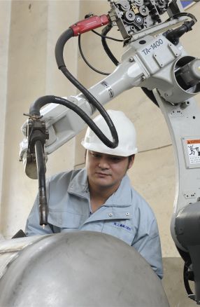 2臺(tái)松下焊接機(jī)器人,高脈沖焊接,無(wú)飛濺,自動(dòng)化程度高,焊縫美觀